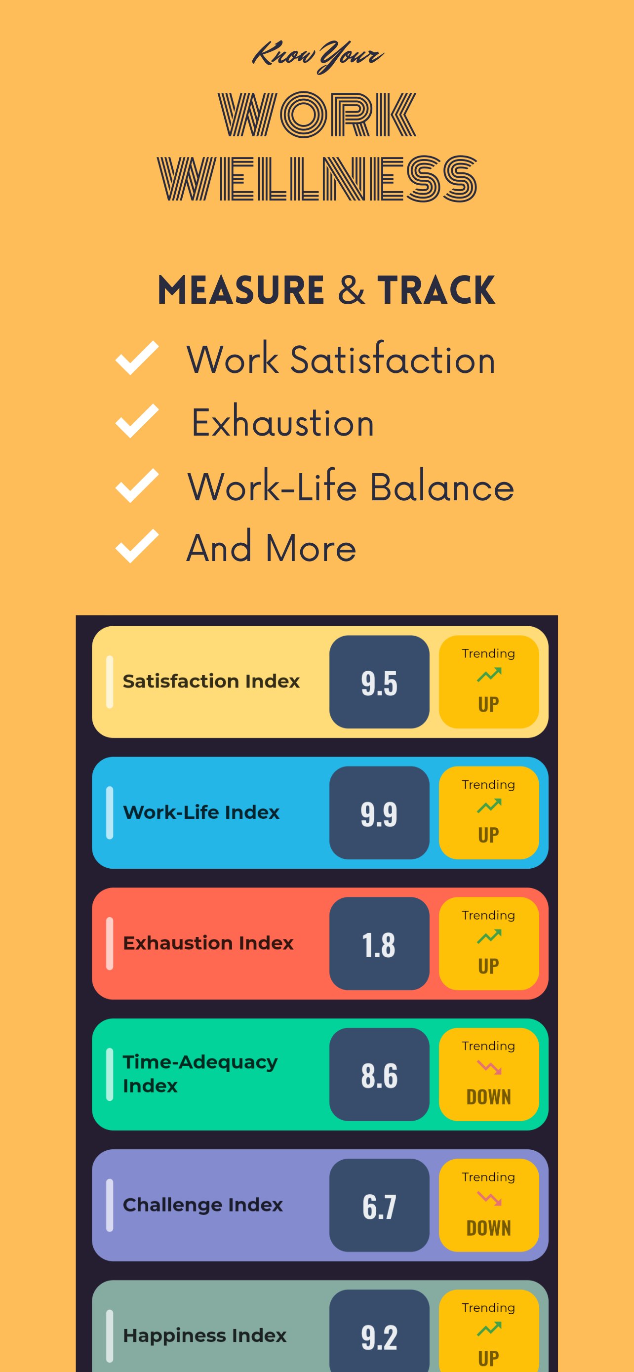 "When we have apps to measure steps and sleep for our health-wellness, we should have app to measure our work-wellness. When we have Index like S&P to track stock market, we should have Index to track our work-life."